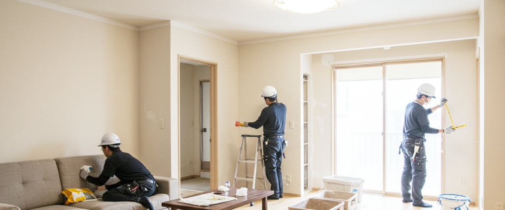 お客様に代わりアフターメンテナンス専門の社員が工事を行った部分を丁寧に、手際よく点検を行います。